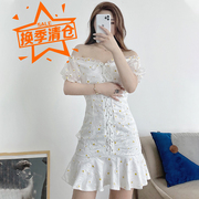 • 宝贝名称: 小雏菊碎花连衣裙女夏季新款法式复古蝴蝶结收腰蓝色鱼尾裙