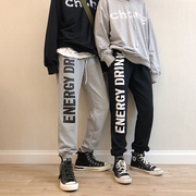 • 宝贝名称: LES帅T林弯弯秋季情侣灰色字母印花卫裤束脚裤束腿裤运动裤男女潮