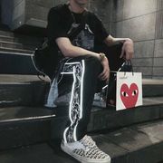 • 宝贝名称: 反光裤子PlanLess骨骼印花潮牌直筒宽松休闲长裤松紧腰黑色工装裤