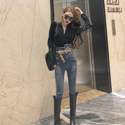 • 宝贝名称: 2019春秋新款大码胖mm高腰chic网红九分牛仔裤弹力显瘦小脚铅笔裤
