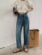 • 宝贝名称: palace.宫牛仔裤女秋季韩版复古高腰宽松显瘦阔腿裤百搭直筒裤子