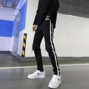 • 宝贝名称: 高街破洞补丁牛仔裤男新款弹力黑色修身小脚拉链嘻哈四季潮牌长裤