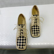 • 宝贝名称: 英伦风春秋时尚系带高跟鞋女新款方头百搭深口单鞋2022棋盘格女鞋