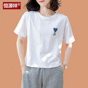 • 宝贝名称: 恒源祥夏季纯棉t恤女短袖2022年新款全棉白色t桖衫配裙子高腰上衣