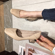 • 宝贝名称: 软皮不磨脚高跟鞋女粗跟百搭春夏方头中跟奶奶鞋黑色职业工作单鞋