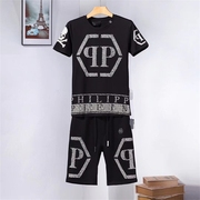 • 宝贝名称: 欧美短袖T恤套装男士骷髅头大闪钻烫钻时尚潮纯棉流短卫裤2件套