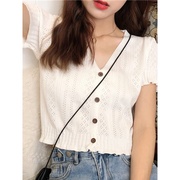 • 宝贝名称: 薄款针织V领缕空短袖T恤女夏新款休闲冰丝小仙女短款空调开衫上衣