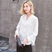• 宝贝名称: 2017春夏装新款韩版宽松显瘦气质长袖V领雪纺衬衫女韩范白色衬衣