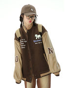 • 宝贝名称: UNIVERSER秋冬高羊毛含量毛呢PU皮夹棉拼接棕色多刺绣棒球外套