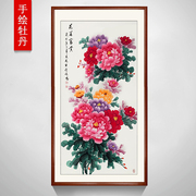• 宝贝名称: 花开富贵竖版壁画手绘国画牡丹画花新中堂挂画玄关走廊过道装饰画
