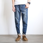 • 宝贝名称: 春秋复古水洗深蓝色猫须九分牛仔裤男修身百搭青年长裤小脚裤子潮