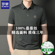 • 宝贝名称: 罗蒙桑蚕丝短袖T恤男夏季翻领冰丝半袖T恤中年男士POLO衫上衣服