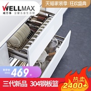 • 宝贝名称: 威万事拉篮304不锈钢双层缓冲厨房橱柜拉篮抽屉式碗盘架碗碟篮H1K