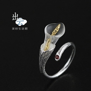 • 宝贝名称: 925纯银天然水晶镶石榴石马蹄莲 素心开口 戒指女 日韩 潮人 个性