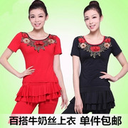• 宝贝名称: 2016广场舞服装新款夏季短袖绣花上衣成人女拉丁舞演出上装牛奶丝