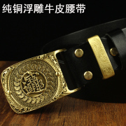 • 宝贝名称: 包邮皮带男真皮招财进宝纯铜头板扣中年复古头层牛皮中国风裤腰带