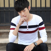 • 宝贝名称: 春装长袖T恤男装 2017潮流以純百搭条纹圆领运动体恤弹力打底衫