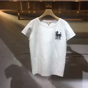 • 宝贝名称: 2017夏装新款J1203702正品百搭显瘦圆领钉珠休闲短袖T恤上衣女