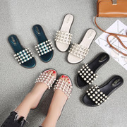 • 宝贝名称: 2017新款珍珠凉拖鞋女夏韩版时尚外穿女士平底一字拖平跟沙滩凉鞋