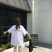 • 宝贝名称: 港味chic衣服夏季宽容刺绣女生t恤宽松大的短袖绑带韩版学生复古