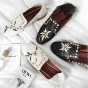 • 宝贝名称: 明星同款乐福鞋女真皮浅口踩跟懒人鞋刺绣平底单鞋女英伦小皮鞋潮