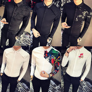 • 宝贝名称: 发型师夜店个性男装绣花长袖衬衫2017秋季韩版修身百搭衬衣青年潮
