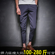 • 宝贝名称: 春秋新款九分男裤条纹休闲裤加肥加大英伦小脚修身西裤潮显瘦大码