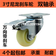• 宝贝名称: 包邮3寸万向轮带刹车白尼龙耐磨工业脚轮推车滑轮设备航空箱轱辘