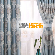 • 宝贝名称: 蓝色高精密欧式客厅卧室遮光提花窗帘落地飘窗加厚定制美式窗帘布