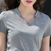 • 宝贝名称: 白色V领t恤女短袖纯棉夏季2018新款宽松大码纯色简约半袖体恤上衣
