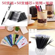 • 宝贝名称: 【50支笔+50支芯+笔筒+卡通笔袋】可选欧标中性笔0.5mm子弹头笔芯