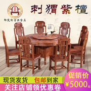 • 宝贝名称: 红木餐桌圆桌客厅中式刺猬紫檀花梨实木圆台饭桌椅组合带转盘家用