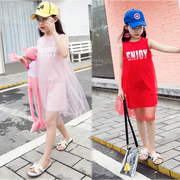 • 宝贝名称: 儿童背心裙无袖2018新款夏装拼接网纱洋气女童纯棉无袖个性连衣裙