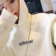 • 宝贝名称: 韩国代购连帽加绒卫衣女秋冬宽松纯棉加厚字母长袖慵懒风薄款外套