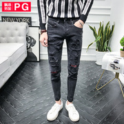 • 宝贝名称: 飘港秋季新款黑色破洞牛仔裤男韩版潮流修身型小脚裤子男弹力长裤