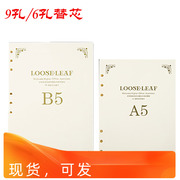 • 宝贝名称: B5 A5活页本米黄替芯纸6孔9孔13mm宽行距26孔20孔100g纸六孔九孔