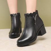 • 宝贝名称: 妈妈鞋冬季加绒保暖加厚棉鞋真皮羊毛粗跟女士短靴中跟中年皮鞋女