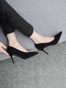 • 宝贝名称: 黑色工作女鞋职业超烫高跟鞋女尖头细跟百搭2020春季新款绒面单鞋