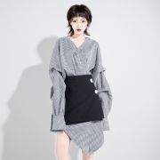 • 宝贝名称: 裙子女秋2021新款法式复古裙山本两件套收腰显瘦格子不规则连衣裙