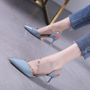 • 宝贝名称: 法式少女高跟鞋2019新款夏季铆钉透明S型一字带细跟包头凉鞋女