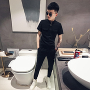 • 宝贝名称: 夏天韩版休闲社会小伙帅气衣服一套男士潮流夏季网红短袖T恤套装