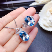 • 宝贝名称: 正品皇冠天然托帕石戒指吊坠两件套装 S925纯银蓝托帕石项链饰品