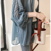 • 宝贝名称: 韩版竖条纹防晒衬衣女中长款休闲薄外套夏天宽松大码空调衫长袖潮