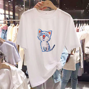 • 宝贝名称: 短袖T恤女2019新款夏装猫咪刺绣圆领宽松学生潮ins百搭半袖上衣
