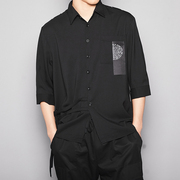 • 宝贝名称: 特别推荐剪裁衬衫 不对称剪裁标签贴纸拼接夏季宽松短袖衬衫男潮