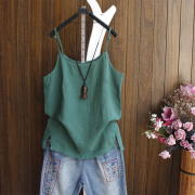 • 宝贝名称: 文艺原创亚麻小吊带背心女夏款宽松百搭简约纯色盘扣无袖打底上衣