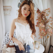 • 宝贝名称: 白色荷叶边吊带外穿小清新设计感露脐背心夏季性感无袖上衣女刺绣