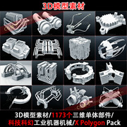 • 宝贝名称: 3D模型素材OBJ/1173个三维零件部件/科技科幻工业机械/X Polygon