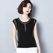 • 宝贝名称: 薄款冰丝针织衫女短袖t恤套头黑色百搭打底衫宽松镂空亮丝上衣夏
