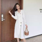 • 宝贝名称: 复古单排扣长袖衬衫连衣裙2019夏季新款chic港风设计感小众A字裙
